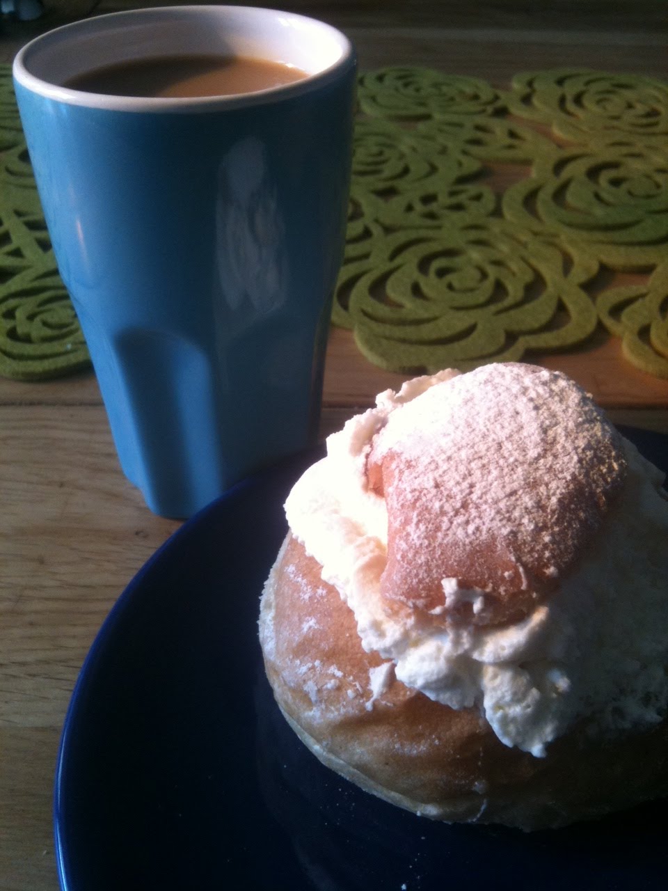är idag att äta en nybakad fet gräddig semla, dricka en god kopp kaffe och sen bädda ner bebis i vagnen och ta en lång promenad (för att bränna bort semle-fettet) med en snygg kille i varm skön sol!!